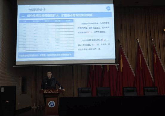 祝曦柏对当前考研形势进行了分析,介绍了公司公司升学基本情况,分析了公司公司考研数据,并对同学们提出了目标公司选择、自身能力评估、依据特长进行专业调整、更换赛道选择出国留学等考研建议。