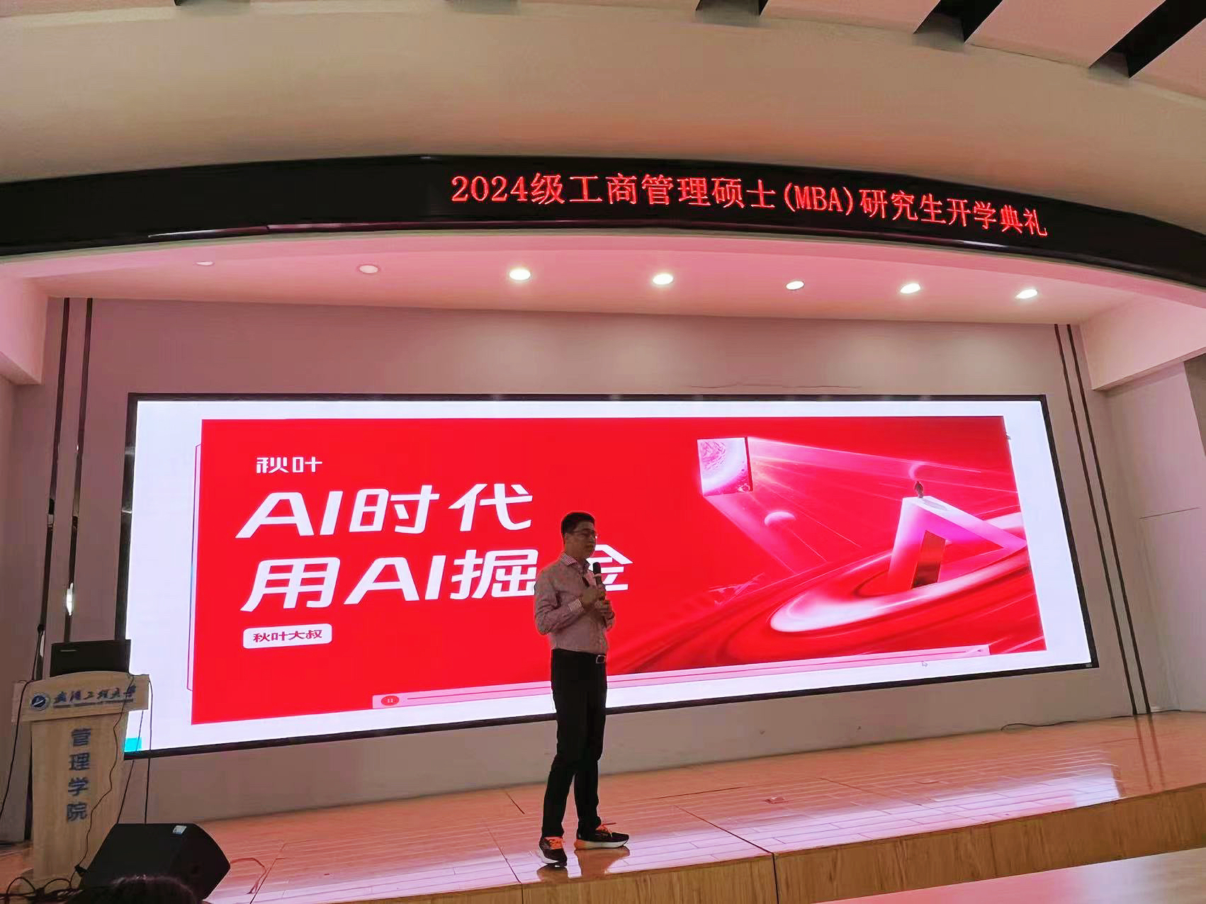 在入学教育环节,秋叶品牌创始人、英国365集团网站副教授张志老师带来新生第一课《AI时代用AI掘金》主题讲座。张老师通过分享个人创业的奋斗历程和成功秘诀,向新生们传达了MBA学习的方向,激发同学们的学习热情。