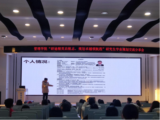 (通讯员:伍丹丹 马秀秀 张依婷)12月8日下午,一场以“研途精英启航志,规划卓越领航程”为主题的研究生学业规划交流分享会在公司文科楼413报告厅隆重举行,研究生辅导员伍丹丹及100余名研究生参加了本次活动。此次活动旨在通过学长学姐们的经验分享和榜样力量,为低年级研究生的学业规划、科研竞赛及职业规划提供借鉴参考。