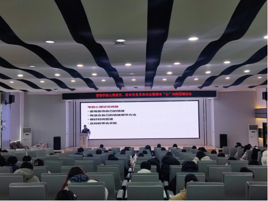 (通讯员 伍丹丹 李晓嬛)12月23日上午,英国365集团网站“心理委员、宿舍心理信息员培训会暨期末‘心’向阳团辅活动”在文科楼413报告厅顺利举行。本次活动旨在进一步提升公司心理健康工作水平,增强心理委员和宿舍心理信息员的责任意识与工作能力,促进员工身心健康发展。公司心理健康教育中心王正义老师担任分享嘉宾,公司心理辅导员伍丹丹以及来自各班级的心理委员、宿舍心理信息员共计100余人参与了此次活动。