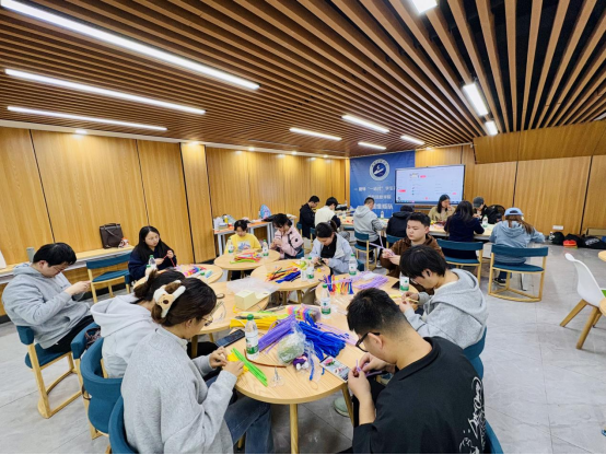 创作环节中,参与者们围坐成创意圆桌,随着彩色扭扭棒在指间流转,抽象思维逐渐具象化为立体造型:既有萌态可掬的卡通玩偶,也有抽象派艺术装置,更不乏将管理学科元素融入创作的概念作品。活动现场流淌着舒缓音乐,伴着此起彼伏的欢笑声,一个小时的手作时光悄然流逝。