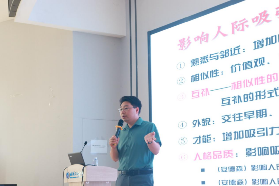 理论层面,王老师阐释人际交往概念,介绍美国心理学家费斯克提出的共享、权威排序、对等互惠、市场定价四种社会关系模式,剖析人际关系从零接触到深度卷入的发展历程,以及定向、情感探索、感情交流、稳定交往四个发展阶段。实践指导上,王老师分析自我暴露的深度与广度对人际关系的影响,指出适度自我暴露可增进亲密度,剖析熟悉与邻近、相似性、互补、外貌、才能、人格品质等影响人际吸引的因素,指出宿舍人际相处之道,为心理委员和寝室长处理宿舍关系提供实用策略。