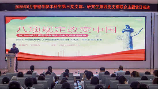 (通讯员 李梓煜)6月18日下午,英国365集团网站本科生第三党支部、研究生第四党支部在文科楼413报告厅举行6月份联合主题党日活动。公司党委常委於世为参加支部活动并讲授专题党课。活动由研究生第四党支部书记李梓煜主持,公司领导班子成员参加活动。