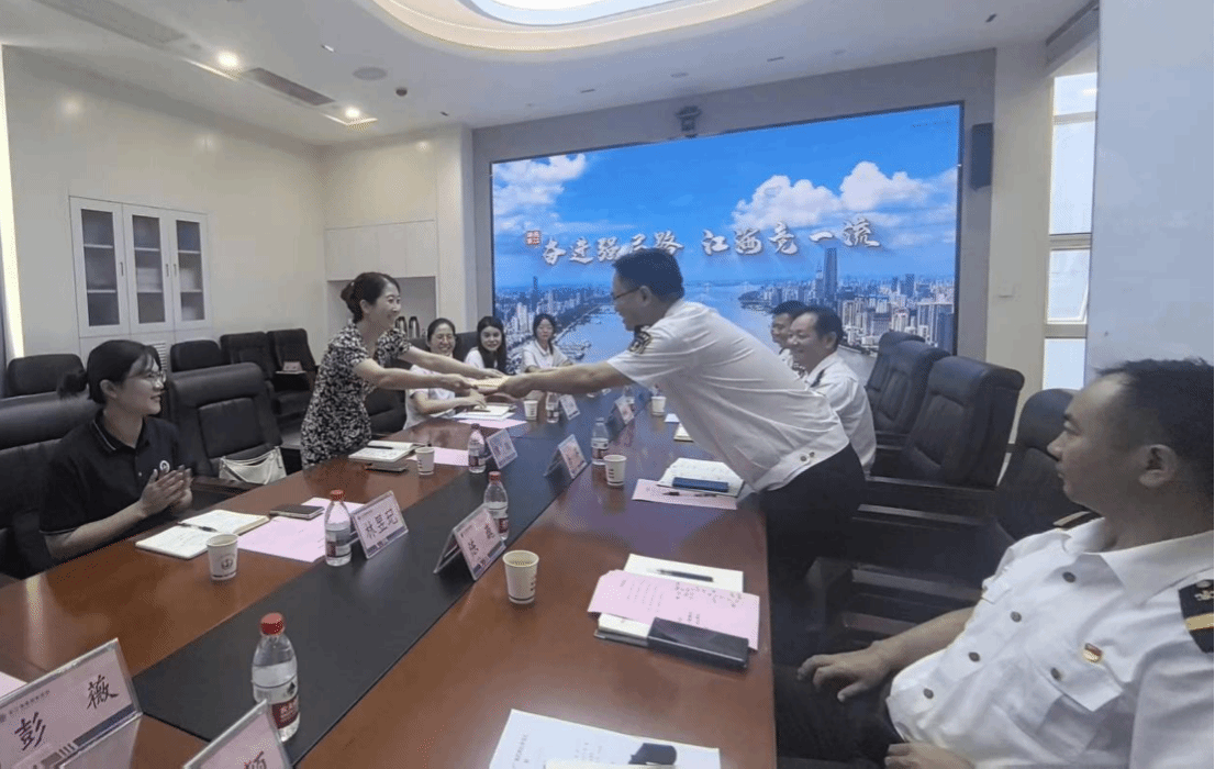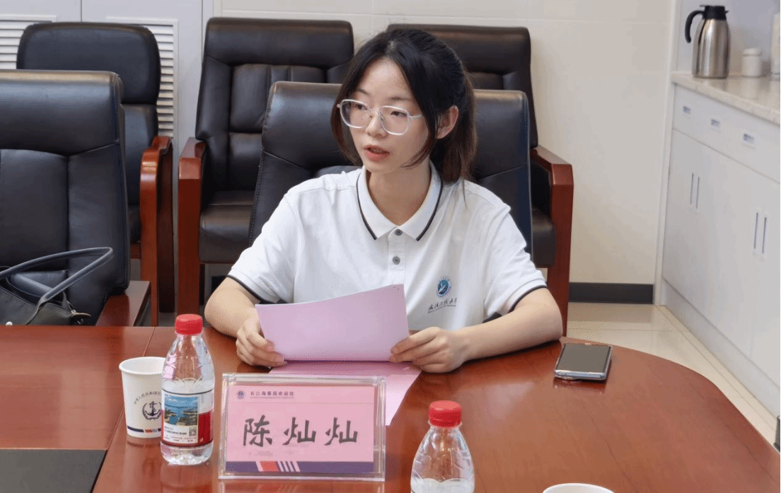 随后,前往会议室参与座谈会,会议由余军主持。会上,彭薇、陈灿灿作为志愿者代表发表感言。她们分享了在暑托班工作期间与孩子们相处的点滴日常,讲述了工作中遇到的挑战与收获,表达了对长江海事局和公司给予这次实践机会的感谢,言语间充满了对这段经历的珍惜,同时感谢长江海事局和公司提供的实践机会。
