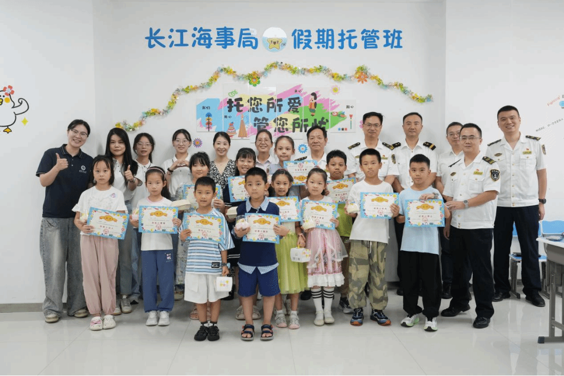 (通讯员 林昱玘)2025年8月15日上午,公司党委书记左辉、党委副书记罗琼在公司团委书记林昱玘、党务干事李梓煜的陪同下,前往长江海事局看望慰问在此开展“海星宝贝”暑托班的“星火”志愿者们,并参与暑托班结业仪式及结业座谈会。长江海事局二级巡视员张俊平、局党工部主任余军、工会办二级主任科员陈巍、船舶检验处二级主任科员张鹏程以及党工部二级主任科员吴雪颖以及暑托班员工及家长参与活动。