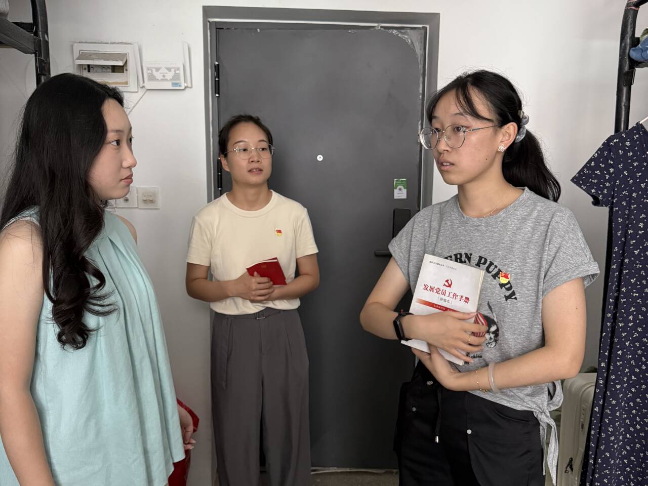 公司选派员工党建工作中心党员代表走进新生宿舍,开展“党员进寝室”活动。党员代表带领新生共同学习了《中国共产党章程》《发展党员工作手册》,并分享了自己的入党历程和学习体会,解答了新生们对于老员工活适应、专业学习规划、人际交往技巧等方面的问题。同时详细解读了入党的具体流程与要求,鼓励新生主动提交入党申请书,以积极态度接受党组织的培养与考察。近距离的交流、接地气的分享,不仅化解了新生的困惑,更激发了他们向党组织靠拢的热情。