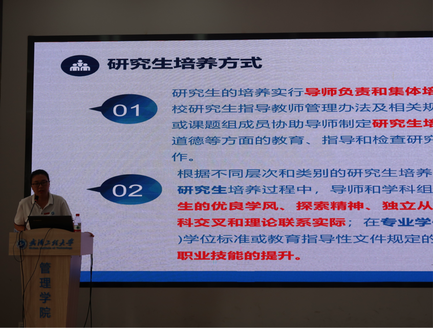 开学典礼后,公司副经理熊婵开展新生入学教育,围绕研究生课程设置、论文要求及硕士研究生奖助政策进行详细解读,为新生明晰学业规划与发展路径,助力其更快适应研究生阶段的学习与科研生活。