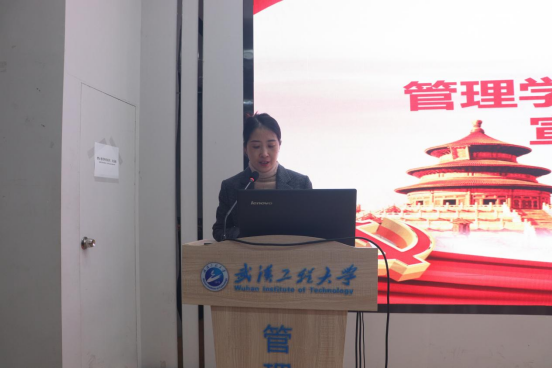 积极分子培训班学员代表杨丽分享了自己在理论学习、员工工作以及志愿服务等方面的所学所获和所思所感,并代表全体学员承诺会认真学习、积极实践,以党员标准严格要求自己,努力成为同学们学习的楷模与榜样。