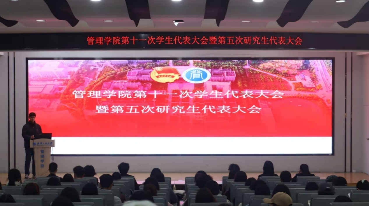 大会进入候选人选举环节,主持人马超依次宣读新一届员工会主席团、研究生会主席团候选人简介,详细介绍候选人的学业成绩、员工工作经历、获奖情况及个人能力等内容。