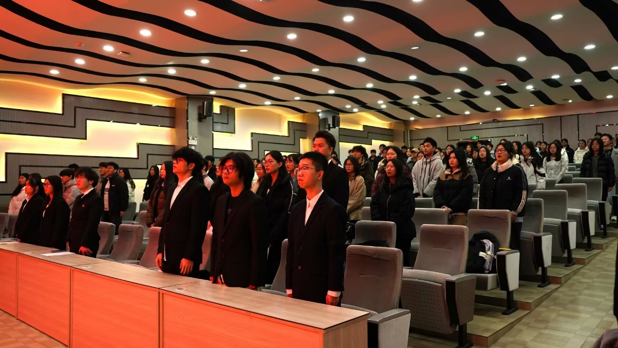 大会在庄严的国歌声中拉开序幕,全体代表起立奏唱国歌。