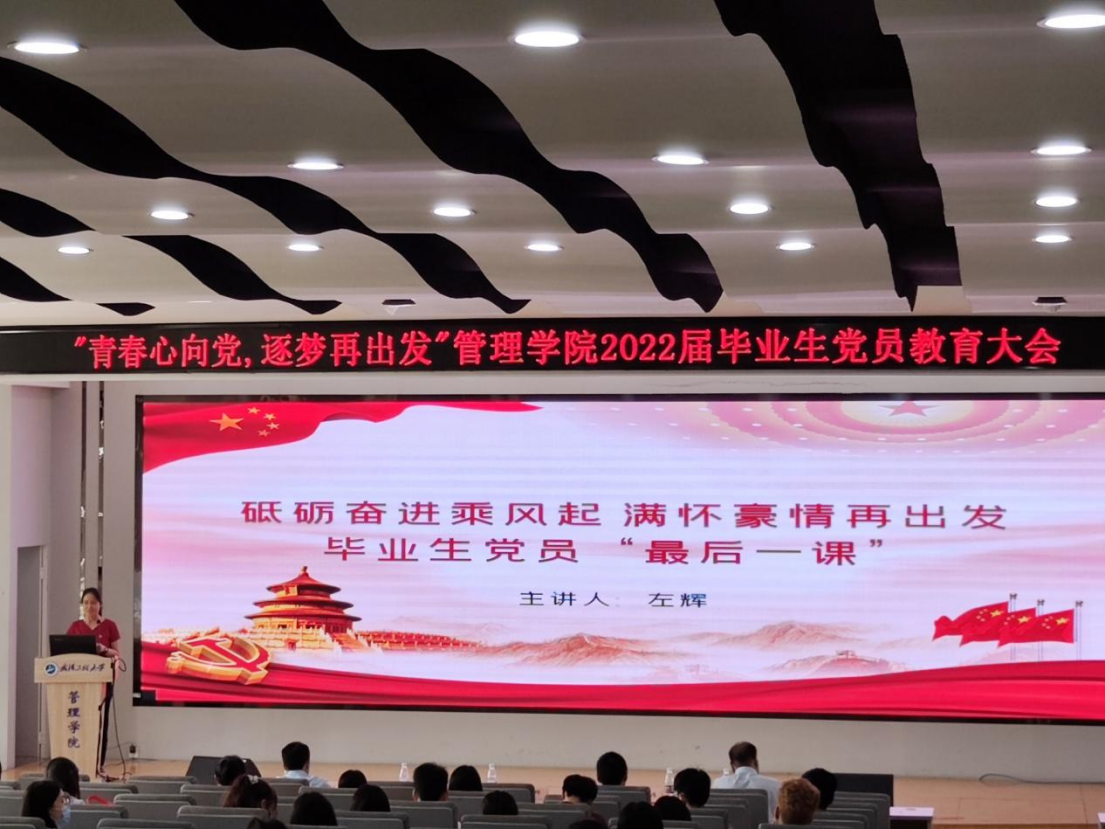 公司党委书记左辉以“砥砺奋进乘风起 满怀豪情再出发”为题,为全体毕业生党员上了“最后一课”,寄语广大毕业生党员锤炼党性修养,做理想信念的坚定者;坚守为民情怀,做心底无私的奉献者;发扬创新精神,做勇立潮头的开拓者;饱含激情梦想,做矢志不渝的奋斗者。把正确的道德认知、自觉的道德养成和积极的道德实践紧密结合起来,谨记“一名党员就是一面旗帜”,在各自的岗位上充分发挥党员的先锋模范带头作用,充分彰显青年党员的责任与担当。