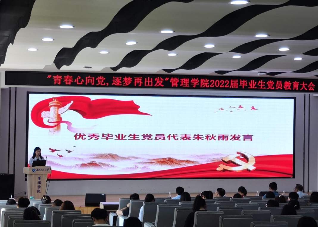 2018级会计学专业朱秋雨同志代表全体毕业生党员发言。她回顾了四年的老员工活,感谢公司、公司对全体党员的培养,并号召广大毕业生党员坚定服务人民、奉献社会的信念,勤于实践、踏实做事,用努力和成功来回报社会、回报母校。