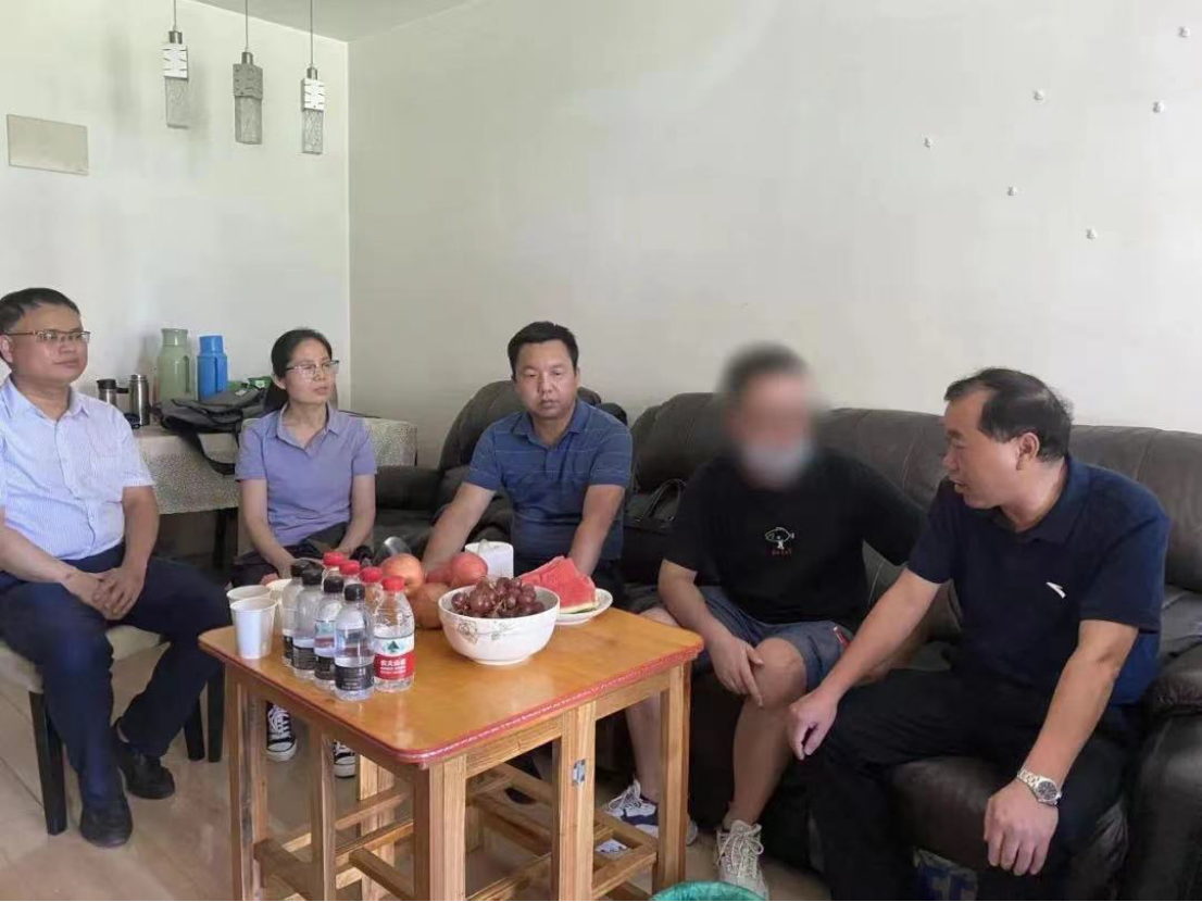 李志旭一行前往洪山区白沙洲的租住房中看望患病康复期的研究生小康(化名)及家人,代表公司表达关心关爱关怀,并为其家人送上慰问金。