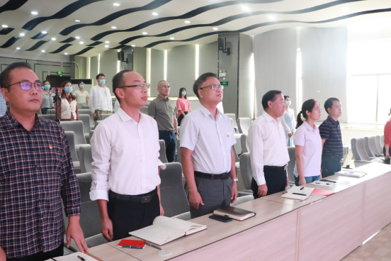 会前,张曦通报了到会和党费缴纳情况。主题党日在雄壮的《义勇军进行曲》中拉开序幕,全体党员重温了入党誓词、诵读了党章。