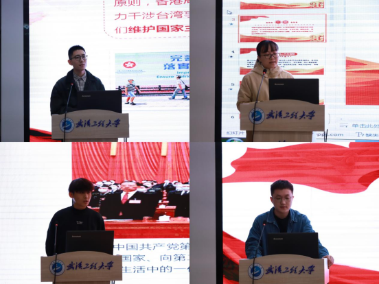 启动仪式后,研究生“党员先锋宣讲团”选拔活动正式开始。四位候选人按顺序依次上台进行为时五分钟的宣讲,分享自己学习党的二十大精神的心得感悟。2020级研究生李双洲作了题为《学习党的二十大,争做担当新青年》的专题宣讲,从理论和实践相结合、历史与现实相贯通的角度,详细介绍了党的二十大主要议程、历史意义、时代背景以及主要成果;2021级研究生胡敏以《深入学习贯彻党的二十大精神,在新征程上奋力开创员工党员新发展局面》为题,以党支部组织委员的角度,从疫情防控显担当、迎新处处有力量、主题党日促学习三个方面,讲述在志愿活动中用实际行动书写新时代的“青春”;2022级研究生别延涛宣讲的题目为《学习党的二十大精神,争做新时代有为青年》,以党的二十大主题和寄语为切入点,论述如何在新时代争做有为青年;2022级研究生罗天宇以《承思想,建乡村,做新人》为题,将党的二十大与研究方向相结合,从继承时代思想、聚焦乡村振兴、争做时代新人三个方面来讲述奋斗目标和前行方向。