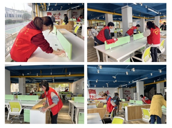志愿者们相互协作,分工明确,不怕苦、不怕累,擦桌、整理物资、扫地拖地……认真打扫每一个角落,有条不紊开展志愿服务活动,充分展现志愿者们奉献、友爱、互助、进步的优良品质,为营造整洁舒适的环境贡献自己的一份力量。