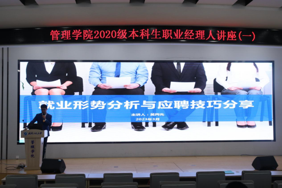 (通讯员:谭泽 王莹莹)为提升毕业生就业技能,对毕业生就业实现精准帮扶,保障毕业生高水平、高质量“双高”就业,3月8日与3月9日,公司于文科楼413报告厅分专业举行2020级本科生就业指导讲座。讲座由资深人力资源经理吴丙先主讲,公司党委副书记李义伟,2020级辅导员谭泽及全体本科生参加讲座。