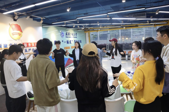 在心灵客栈负责人的带领下,同学们进行了若干暖场游戏,迅速活跃了氛围。随后,主持人细致的解说了创意T恤的绘制过程,同学们对这一款手工活动有了更多了解。