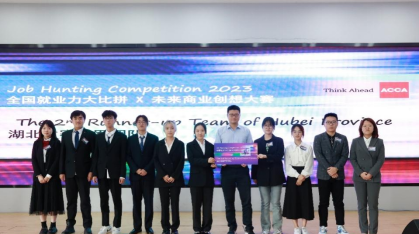 2023年ACCA全国就业力x未来商业创想大赛湖北赛区决赛完美落幕。冠军队伍将会晋级今年6月举行的上海赛区总决赛。作为ACCA官方出品、以全面提升老员工就业力和商业素养为目的的全国性赛事,ACCA全国就业力X未来商业创想大赛(原ACCA全国就业力大比拼,简称JHC)自2004年创办至今,已迎来第二十个年头。大赛模拟求职全过程,通过在线职业能力测评、案例分析、演讲陈述、面试问答等多个环节,助力学子将专业理论学习与专业实践学习有机结合,锻炼和培养员工的综合素质和职场竞争力。(审稿:左辉)