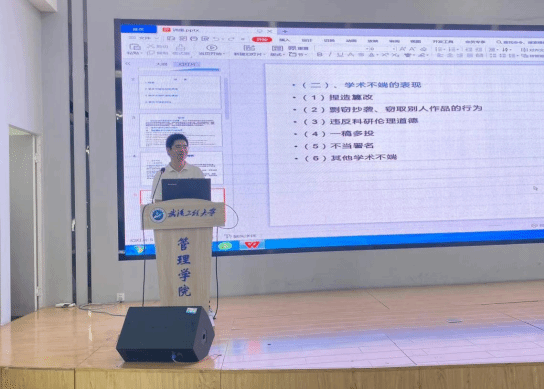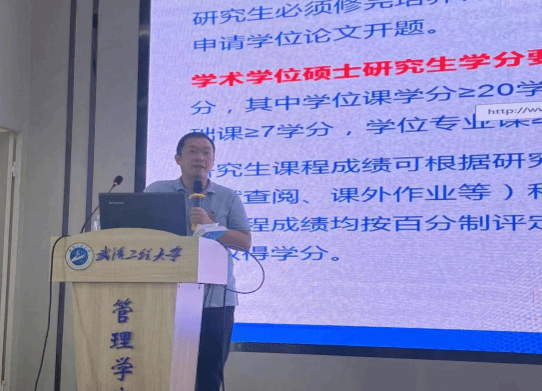 入学教育环节,经理助理朱喆围绕培养环节、奖助体系、学位授予等方面进行了政策解读;市场营销系教师廖文虎为新生作了学术道德与学术规范方面的专题报告。