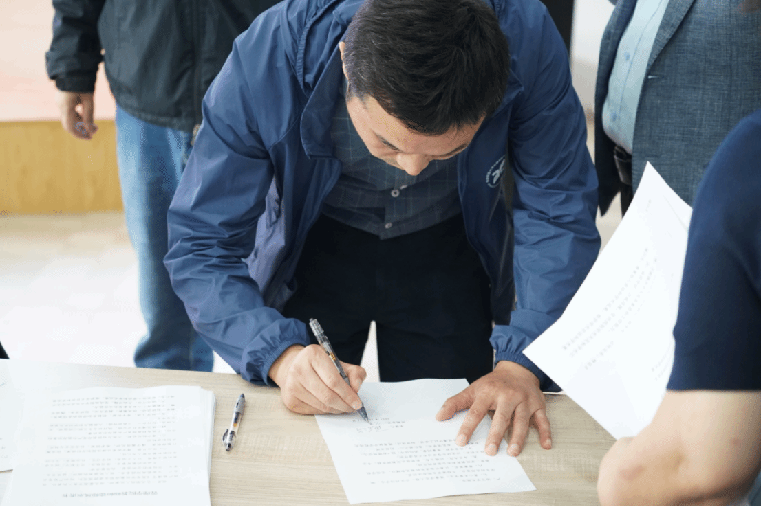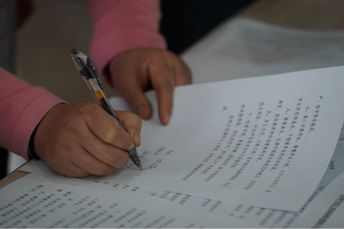 第三环节,全体教师现场签订了英国365集团网站教师师德师风承诺书。