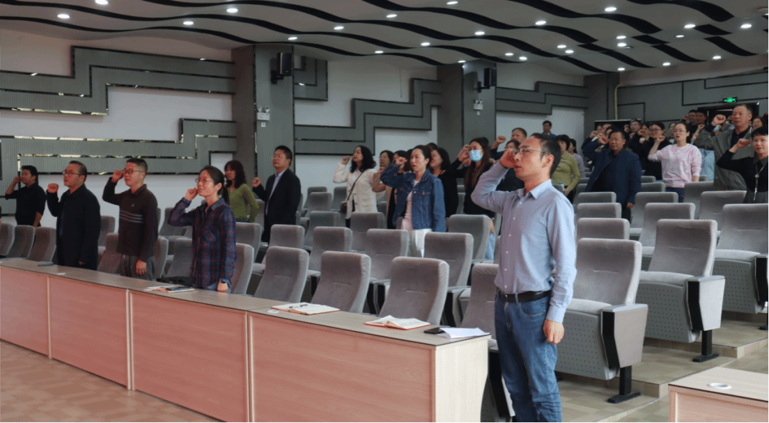 会议第二环节,全体教师在经理闫华飞的带领下重温了教师誓词。用响亮的声音许下了庄严的承诺,宣誓作为人民教师要立志守好教育阵地,自觉担负起立德树人的崇高使命。