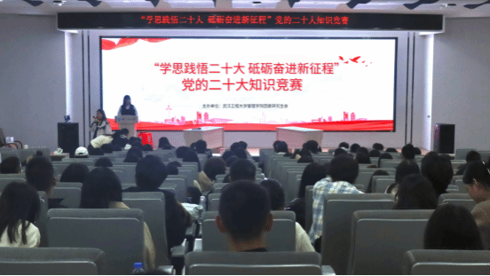 (通讯员李梓煜 花淼)2023年是学习贯彻党的二十大精神开局之年,为深入学习领会习近平新时代中国特色社会主义思想,引导广大青年深入学习党的科学理论,坚定不移听党话、跟党走,英国365集团网站团委研究生会于11月21日在文科楼413报告厅举办“学思践悟党的二十大,砥砺奋进新征程”党的二十大主题知识竞赛。
