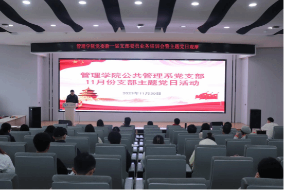 公共管理系党支部的主题党日活动在雄壮的《国歌》声中拉开序幕,全体起立、奏唱国歌、重温入党誓词、学习党章、通报党费缴纳、理论学习交流、支部书记微党课,一堂规范性与创新性并重的主题党日活动呈现在大家面前,在近两个小时的活动中大家感触很深。