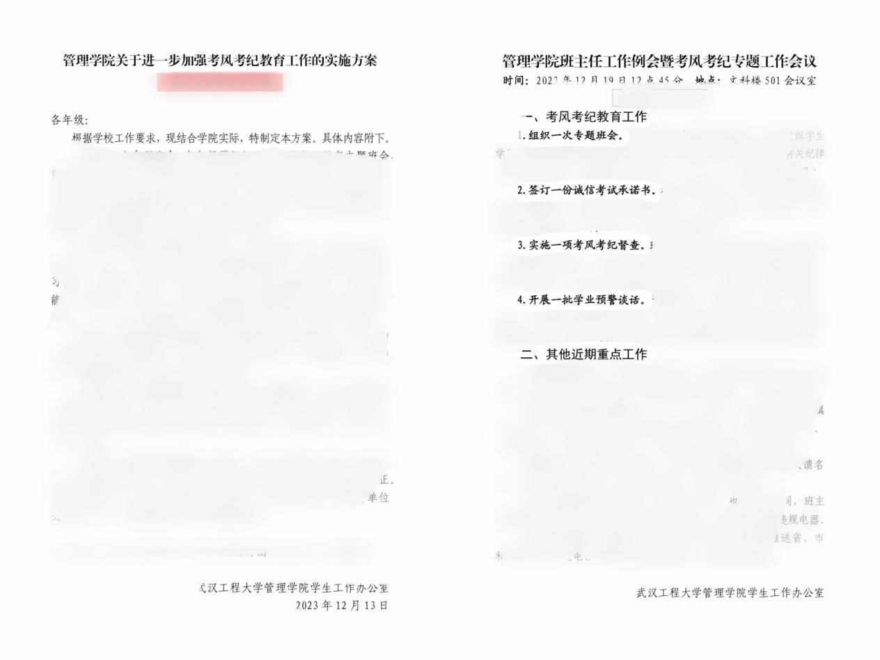 召开一次专题会议。结合公司工作要求和公司实际,第一时间制定考风考纪专项实施方案,召开学工例会和全院考风考纪专题会议,布置重点工作,提出细化要求,进一步明确责任人、路线图和时间表,高位推动各年级、各班级迅速落实落细,形成联动互促机制。