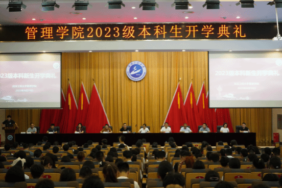 经理闫华飞代表全院师生员工向2023级416名本科生表示热烈的欢迎。他强调,当前,百年未有之大变局加速演进,世界之变、时代之变、历史之变的特征更加明显,在这样一个充满机遇与挑战的大变革时代,抢占新一轮科技革命和产业变革的制高点,是中华民族伟大复兴赢得战略主动的关键,这也更加呼唤当代青年躬逢其盛,成为强国建设中挺膺担当的先锋力量。并对同学们提出四点期望:一是要矢志爱国,胸怀天下,自觉把个人理想追求融入国家和民族的事业之中,把个人成长摆在家国天下的大背景之中,在为国为民的赤诚奉献中成就更高境界的人生;二是要勤学修德,不懈奋斗,将读书作为一种生活态度、将修德作为必修课,在孜孜不倦的求索中掌握已知、探究未知、创造新知,为自身发展打牢坚实根基;三是要脚踏实地,躬行实践,在纷繁复杂的世界里不忘初心,履践致远,保持“自讨苦吃”的斗志,投身于全面建成社会主义现代化强国的宏伟事业中;四是要开拓奋进,砥砺创新,用无畏脚步丈量求学梦想,攻坚“卡脖子”难题,在实现高水平科技自立自强的赛道上奋力跑出管院青年的最好成绩。希望同学们用奋斗和汗水成就更好的自己,在新的赶考之路上书写不负韶华的青春答卷。