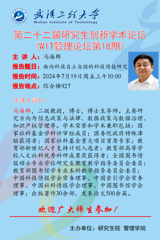 WIT管理发展论坛第18期:面向科技自立自强的科技情报研究 主讲人:马海群