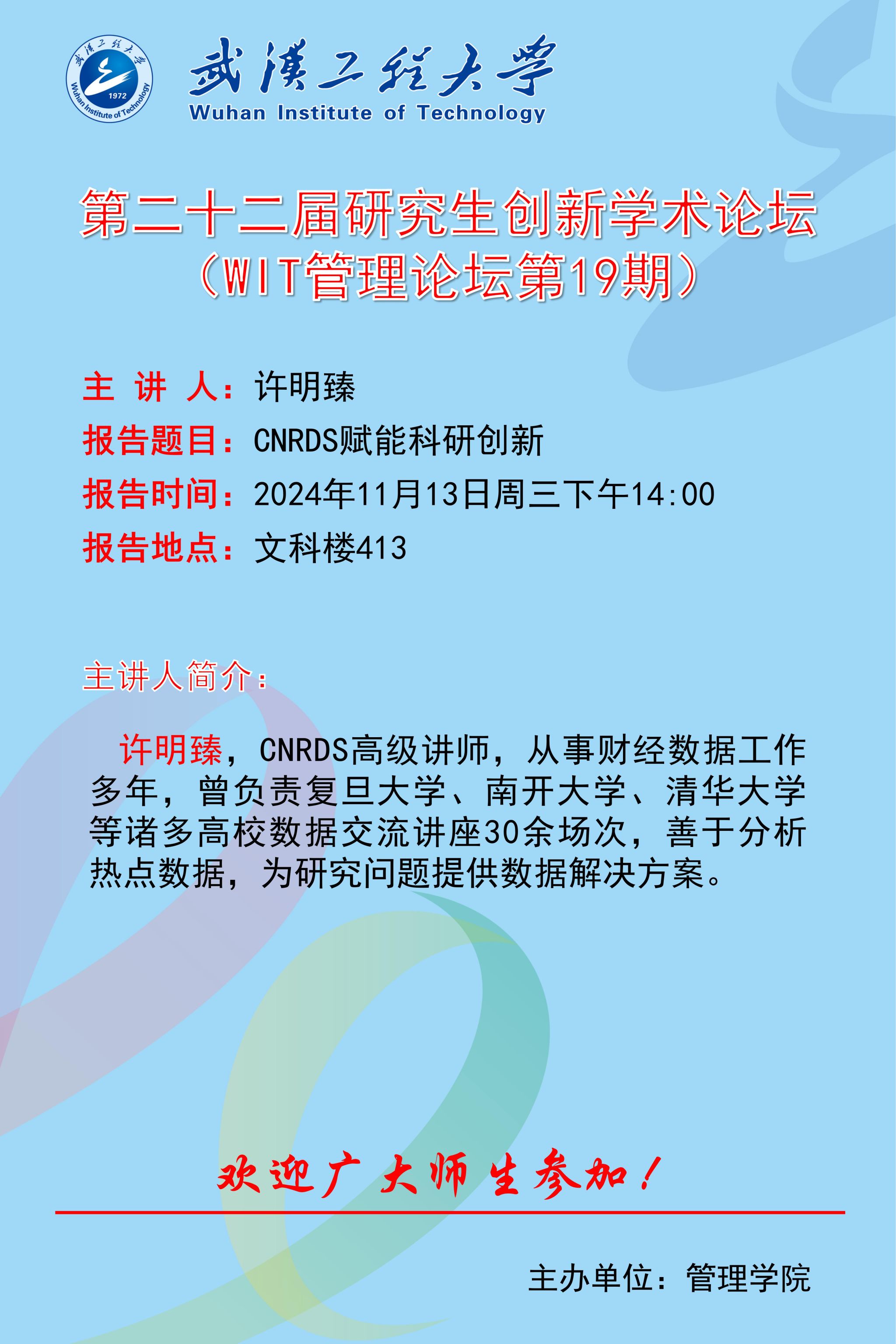 WIT管理发展论坛第19期:CNRDS赋能科研创新 主讲人:许明臻