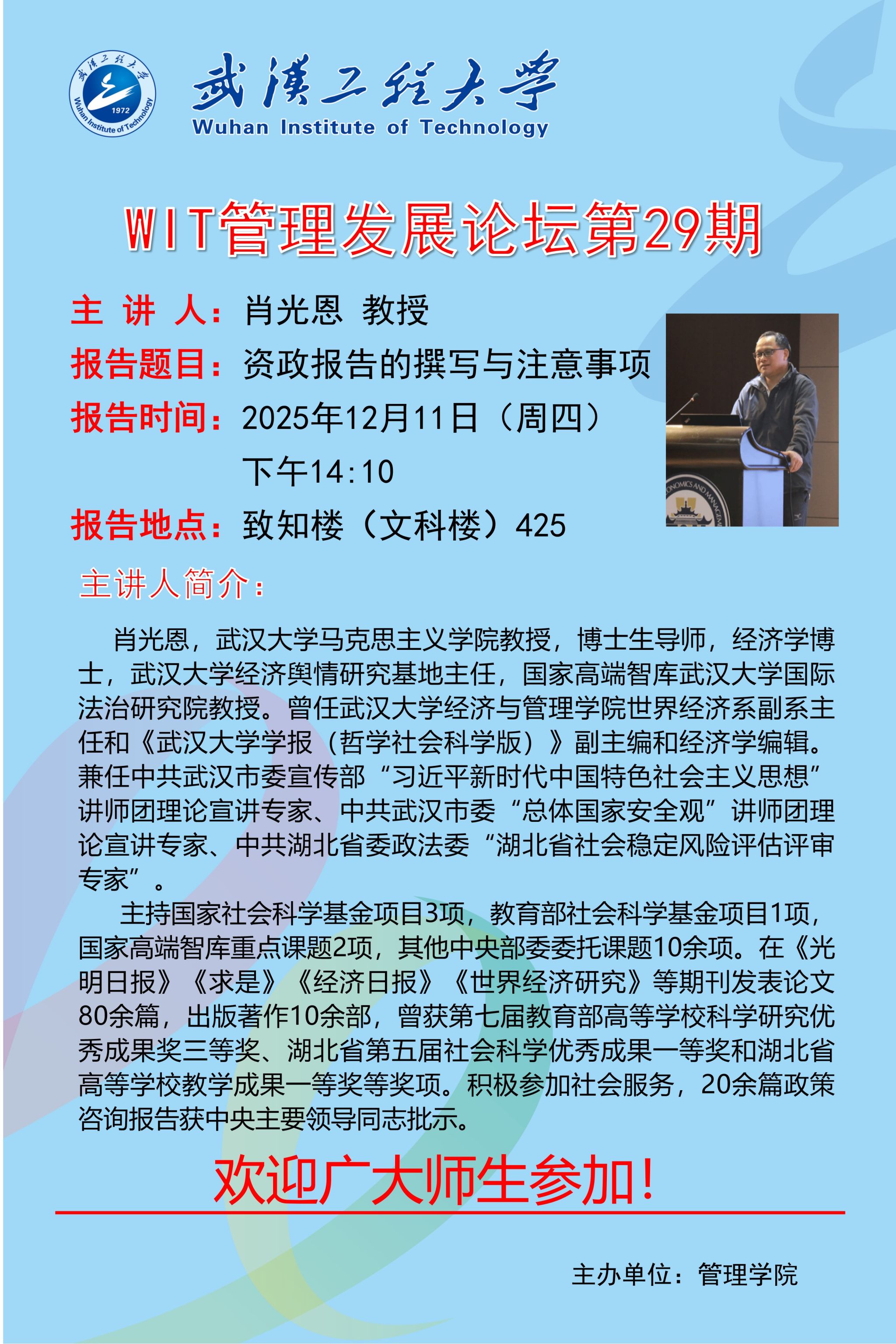 WIT管理发展论坛第29期:资政报告的撰写与注意事项 主讲人:肖光恩