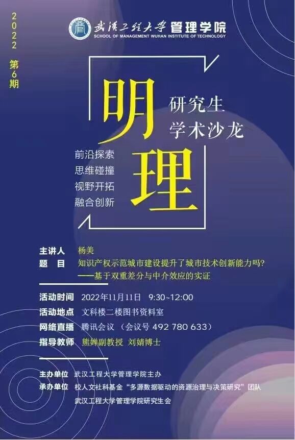 WIT英国365集团网站“明理”研究生学术沙龙第六期:知识产权示范城市建设提升了城市技术创新能力吗?
