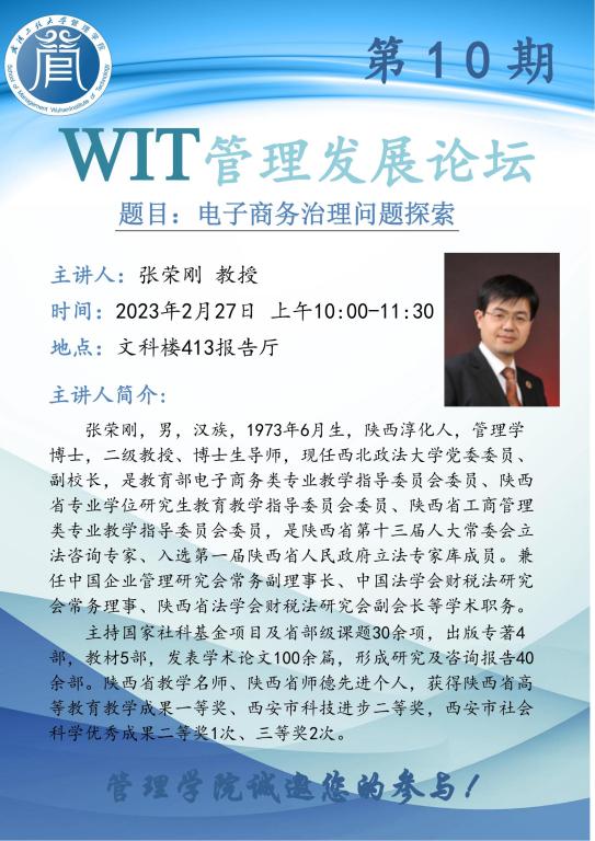 WIT管理发展论坛 第10期:电子商务治理问题探索 主讲人:张荣刚 教授