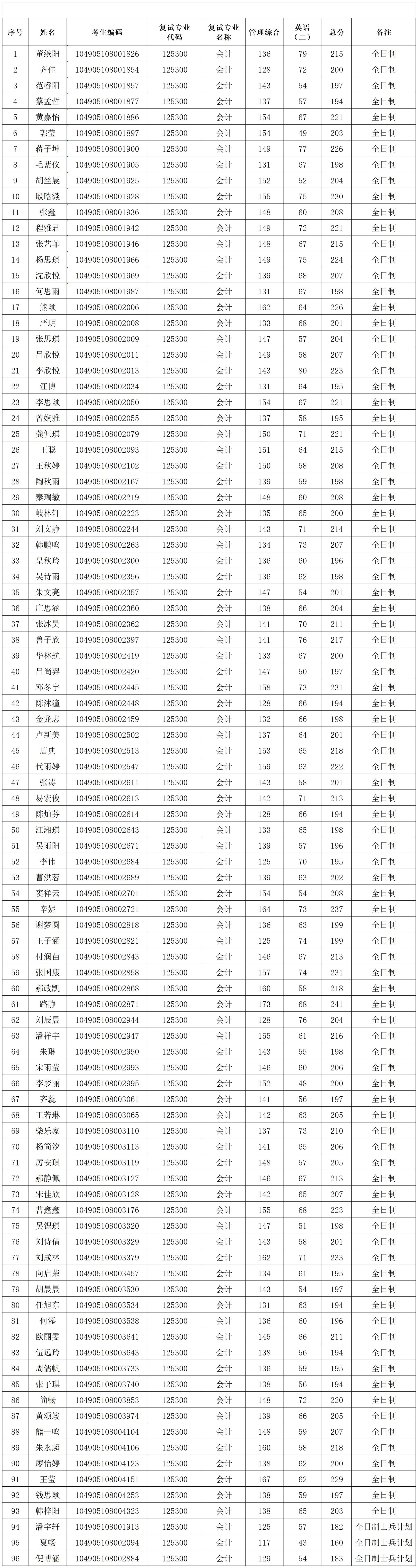 2025年会计专硕(MPAcc)研究生复试名单公示