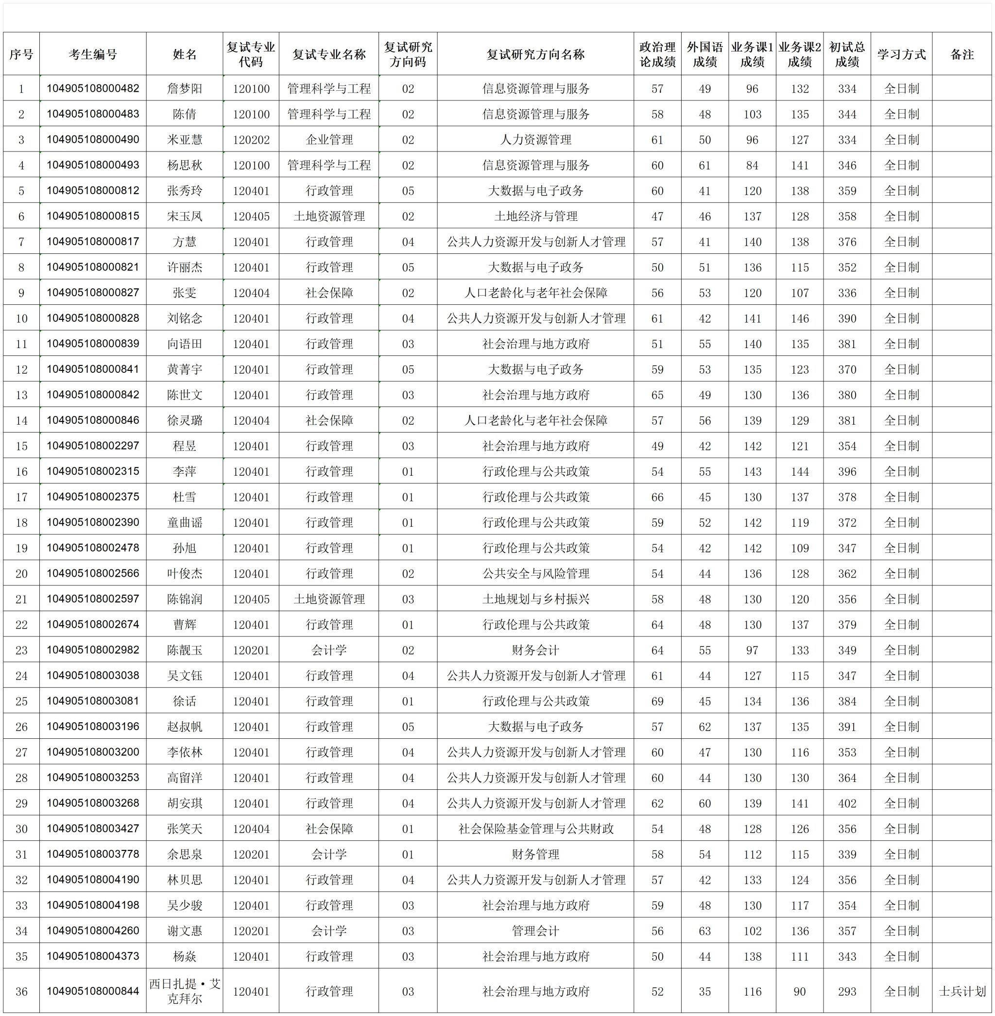2025年学术型硕士研究生复试名单公示(一志愿)