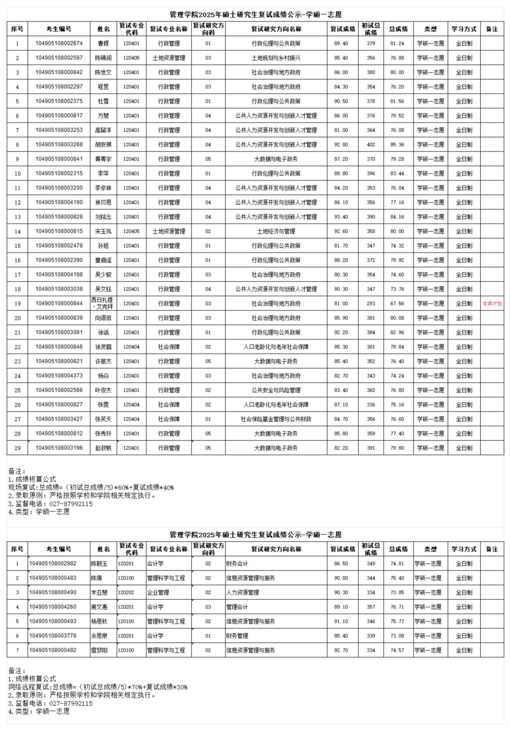 2025年硕士研究生复试成绩公示-学硕一志愿