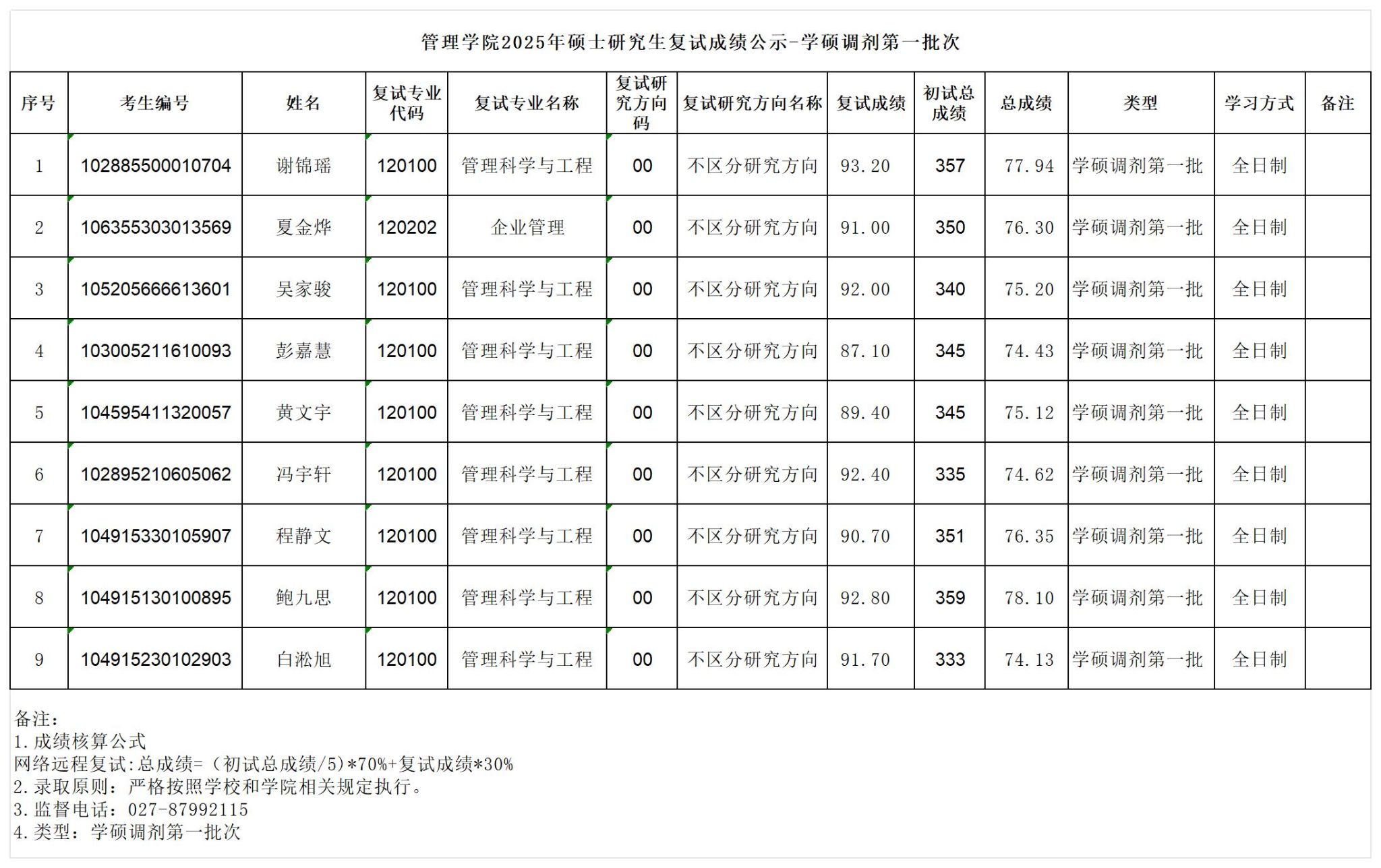 2025年硕士研究生复试成绩公示-学硕调剂第一批次