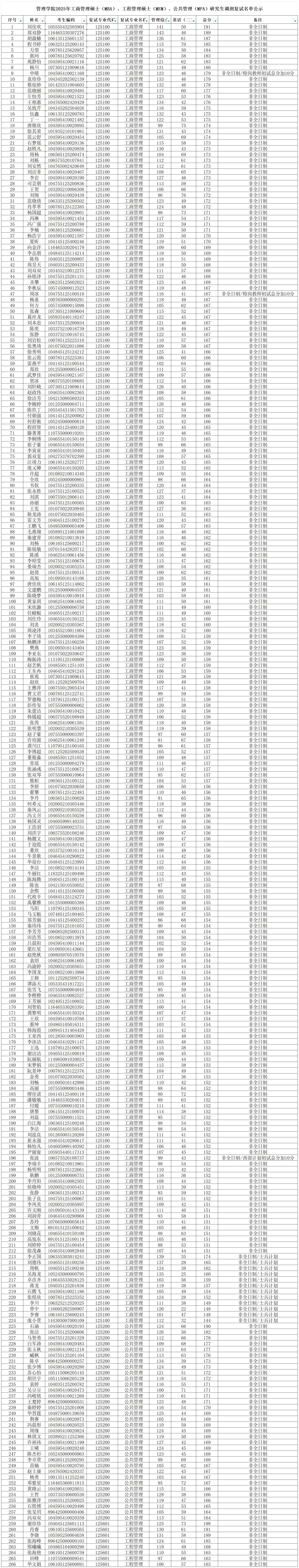 2025年工商管理硕士(MBA)、工程管理硕士(MEM)、公共管理(MPA)研究生调剂复试名单公示