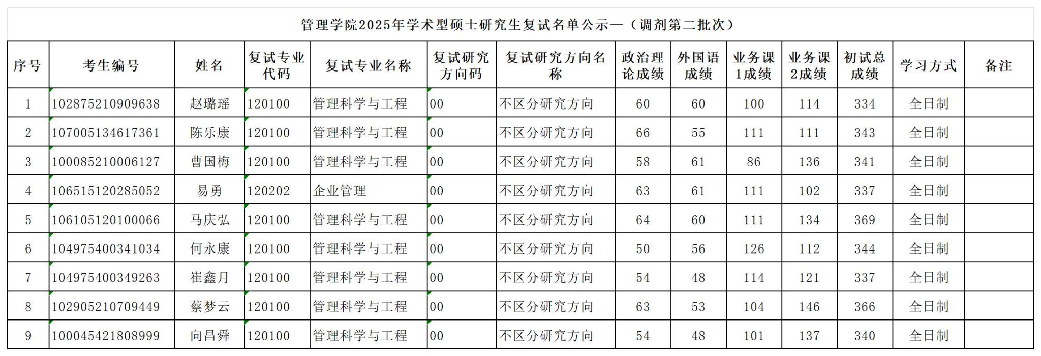 2025年学术型硕士研究生复试名单公示—(调剂第二批次)